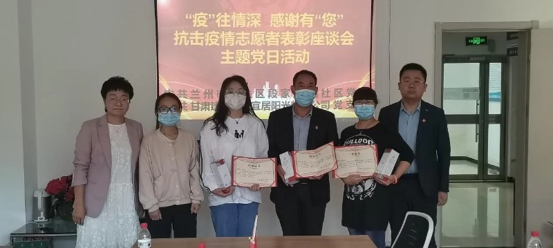 9月8日,物業(yè)公司黨支部聯(lián)合段家灘西社區(qū)黨委組織開展以“'疫'往情深,感謝有'您'”為主題的抗擊疫情志愿者表彰座談主題黨日活動。來自建工瑞景、金悅府和南河庭院小區(qū)的17名志愿者代表,代表三個小區(qū)受表彰的46名志愿者接受表彰。