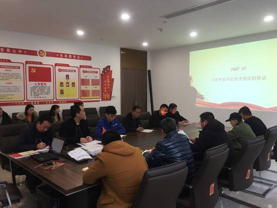 12月7日,成都公司黨支部組織各部室員工及施工單位、監(jiān)理單位相關(guān)人員開展了“憲法進(jìn)項(xiàng)目”主題黨日活動(dòng)。此次主題黨日活動(dòng)由成都公司黨支部書記馬臻奇主持,活動(dòng)主要學(xué)習(xí)了三項(xiàng)內(nèi)容,一是學(xué)習(xí)置業(yè)公司關(guān)于做好2019年國(guó)家憲法日及憲法宣傳周有關(guān)工作的通知;二是學(xué)習(xí)《中華人民共和國(guó)憲法修正案》;三是學(xué)習(xí)習(xí)近平總書記有關(guān)憲法、全面依法治國(guó)的講話精神。