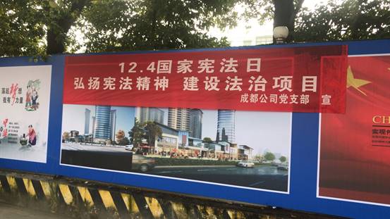 12月1日至7日,是我國(guó)的第六個(gè)“憲法宣傳周”。為廣泛開展憲法學(xué)習(xí)宣傳教育,大力弘揚(yáng)憲法精神,維護(hù)憲法權(quán)威,更好地發(fā)揮憲法在項(xiàng)目建設(shè)中的重大作用。成都公司黨支部開展了形式多樣的憲法宣傳周活動(dòng),通過(guò)在項(xiàng)目辦公室、建筑工地懸掛宣傳橫幅、LED顯示屏播放《憲法》知識(shí)、組織員工專題學(xué)習(xí)等方式,讓憲法深入人心,在項(xiàng)目上生根發(fā)芽。