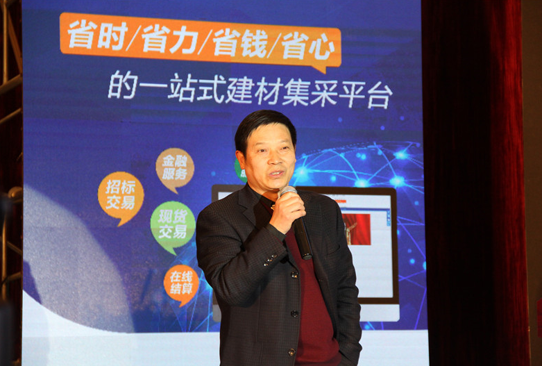 “建投大宗”電商平臺(tái)負(fù)責(zé)人張?jiān)谛聨碇黝}為“打造西北領(lǐng)先一站式建材集采平臺(tái)”的演講。